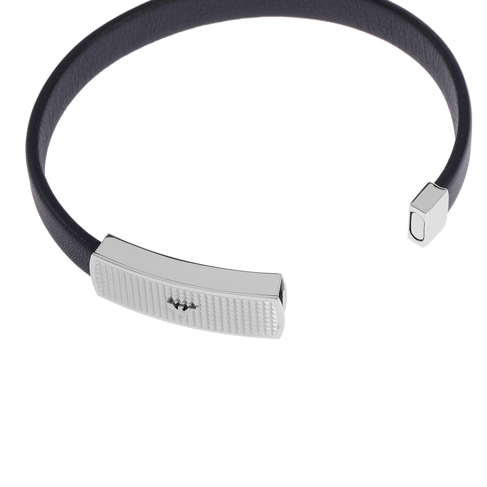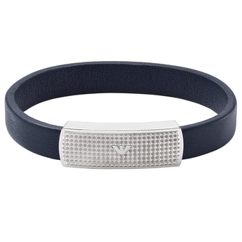 Emporio Armani Stainless Steel Blue Leather ID Bracelet