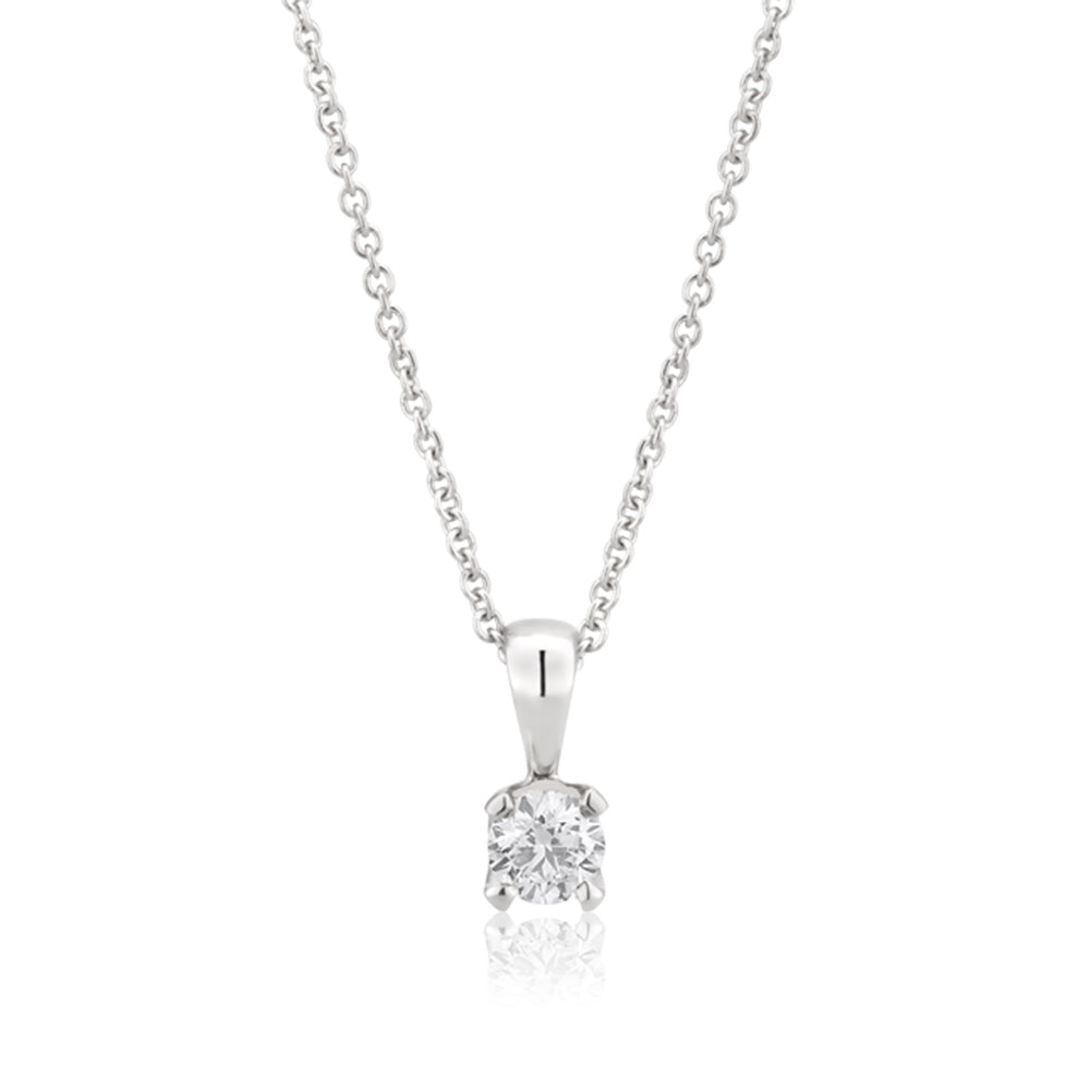 Flawless 9ct White Gold 0.10 Carat Diamond Solitaire Pendant on a 45cm Chain