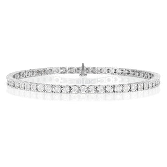 The tennis bracelet is an iconic design, and adds a lavish layer to any kind of attire. You can pair this bracelet with others for a full bejewelled look or let it shimmer on its own. This Flawless 9ct White Gold Tennis Diamond Bracelet is pure luxury, and perfect for any kind of diamond lover.