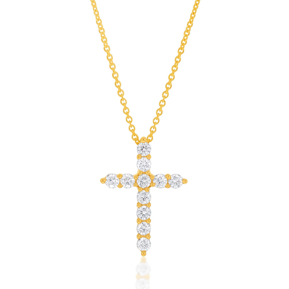 Flawless Cut 1/4 Carat Diamond Cross Pendant in 9ct Yellow Gold 45CM Chain Included