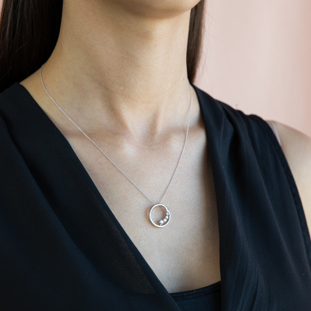 Flawless Cut 1/4 Carat Diamond Open Circle Pendant in 9ct White Gold With Chain