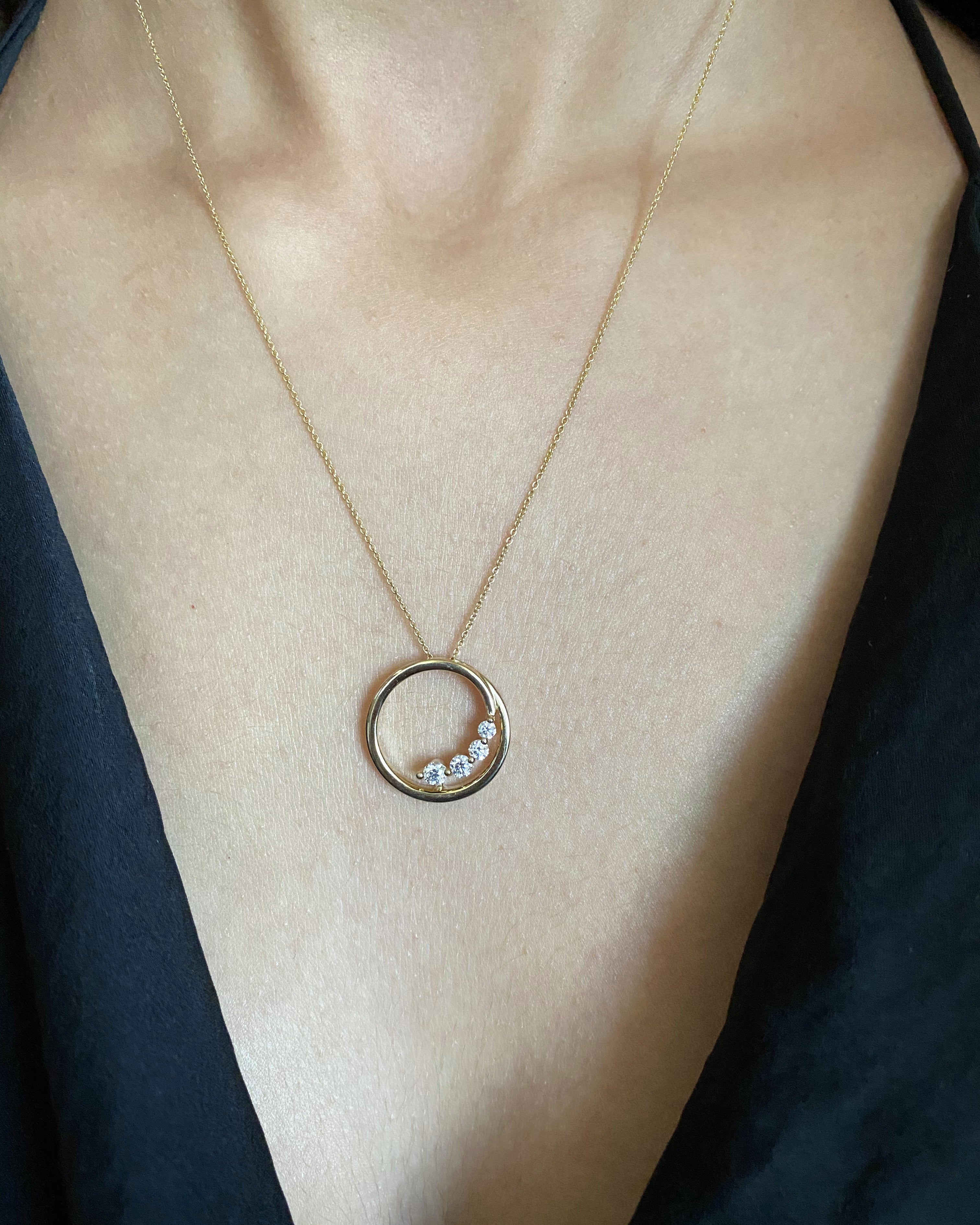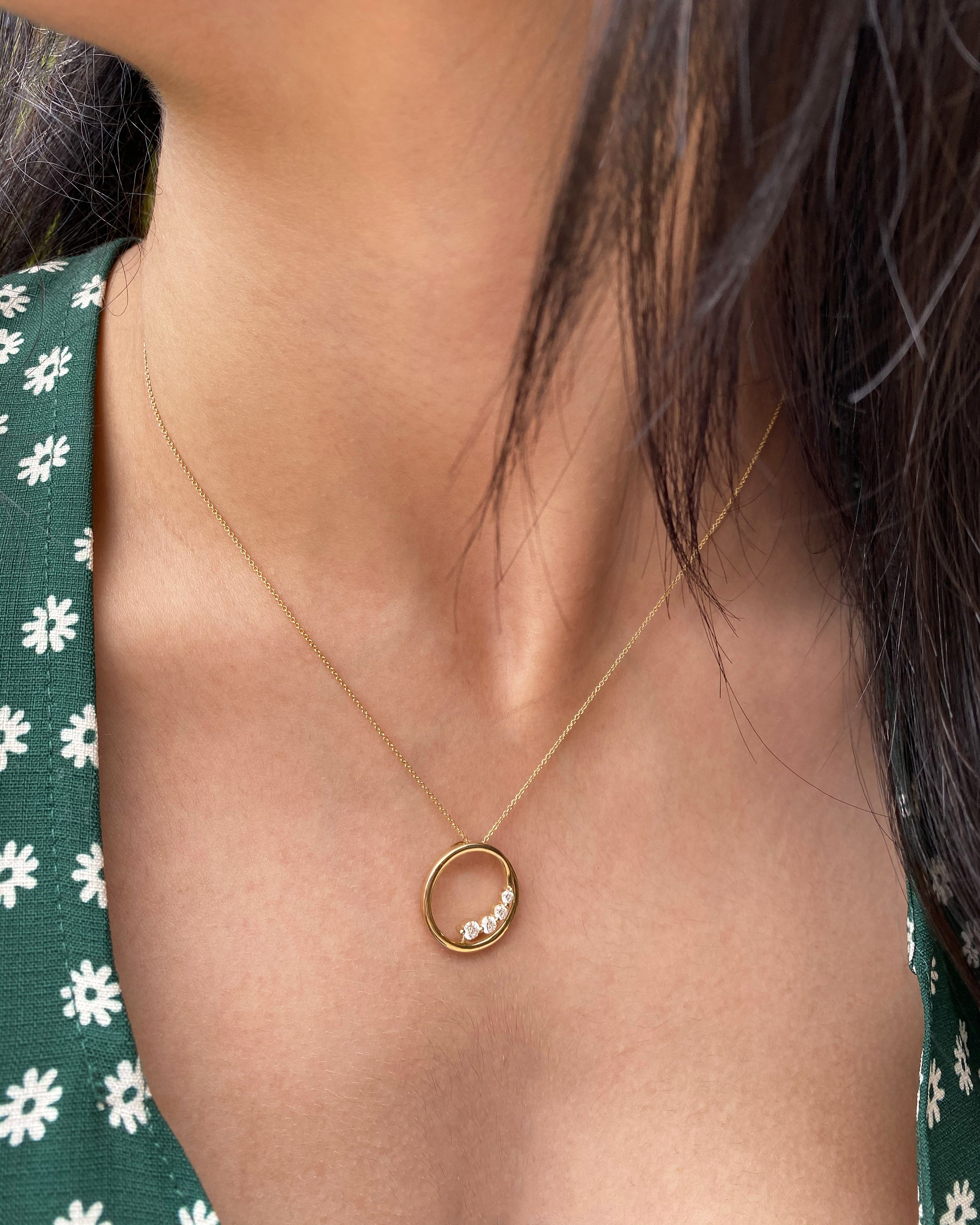 This Classic, Open Circle Journey Pendant features 4 Flawless Diamonds in a beautifully made 9 Carat Yellow Gold setting. If your looking for an every day pendant then spoil yourself with this stunner. Chain Included. Each Flawless purchase comes with its own specific Grading Summary card which details the quality of diamonds and gold used in each piece.