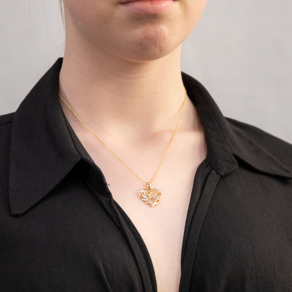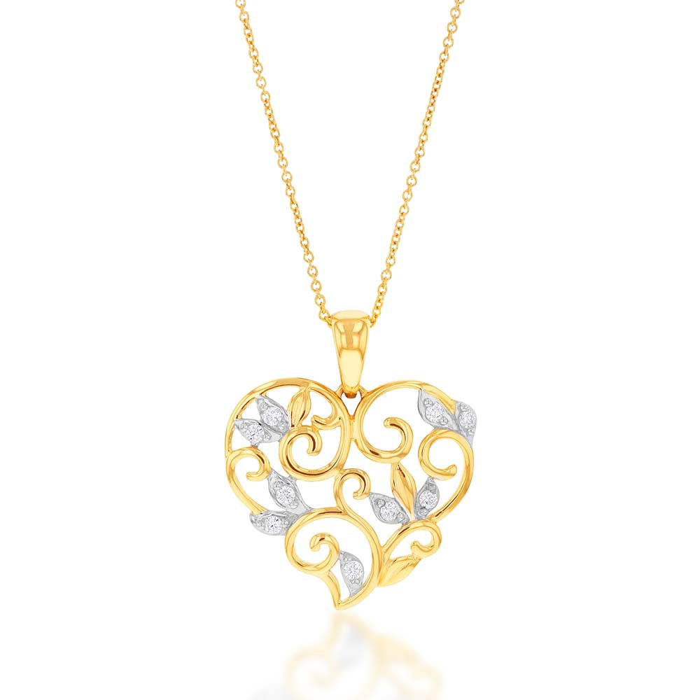 Flawless Cut 10-14PT Diamond Heart Pendant Set In 9ct Yellow Gold on Tiffany Chain