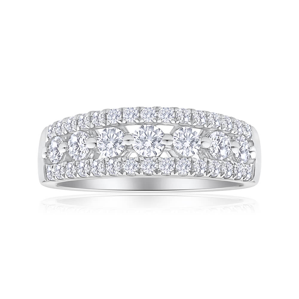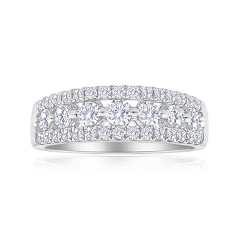 Flawless Cut 18ct White Gold Diamond Ring With 7 Centre Diamonds (TW=1CT)