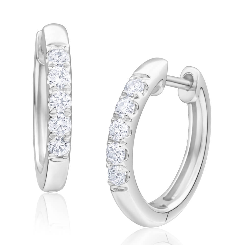 Flawless Cut 9ct White Gold Diamond Hoop Earrings With 5 Diamonds Each (TW=20pt)