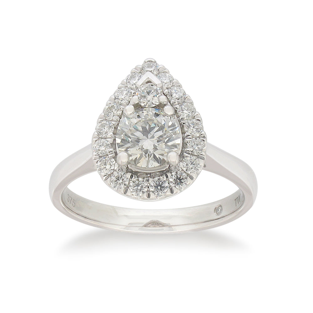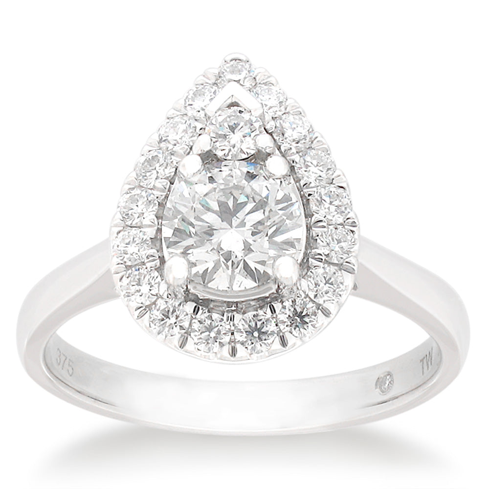 Flawless Cut 9ct White Gold Pear Shape Diamond Ring (TW=1ct)