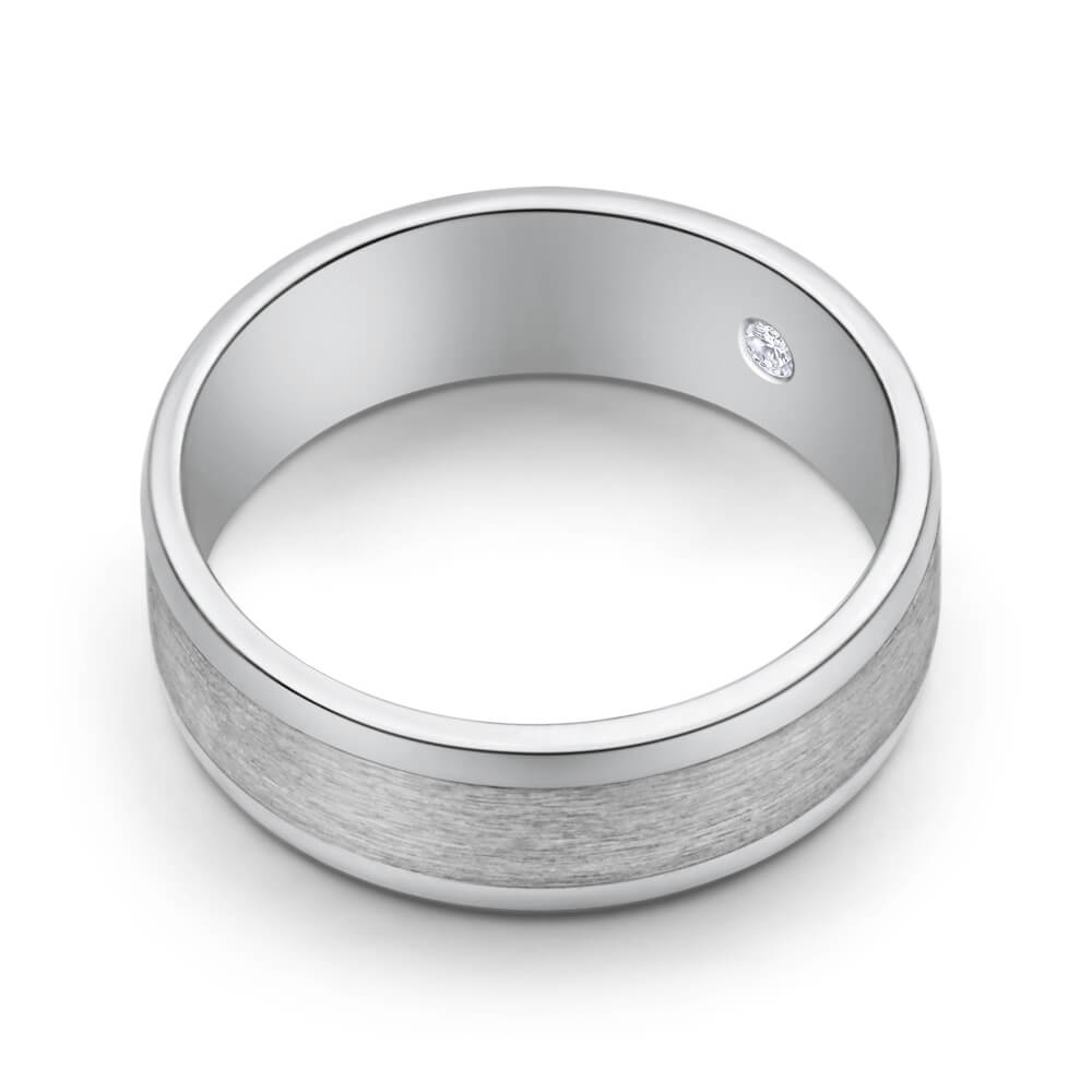 This premium men’s ring is designed to last a lifetime and more. With a subtle brilliant cut diamond on the inside of the ring, this high-quality and simple band can be worn on any occasion to mark sophistication, style and commitment all at once.