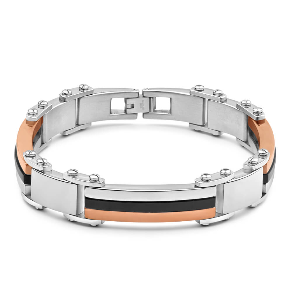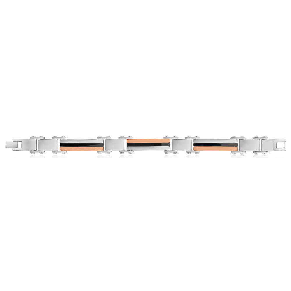Forte Rose Gold Plated Stainless Steel Two Tone Gents Bracelet 22cm