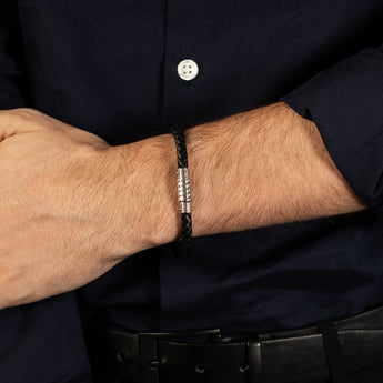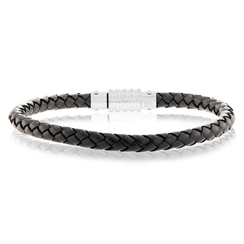 Forte Stainless Steel Black Leather 21.5cm Bracelet