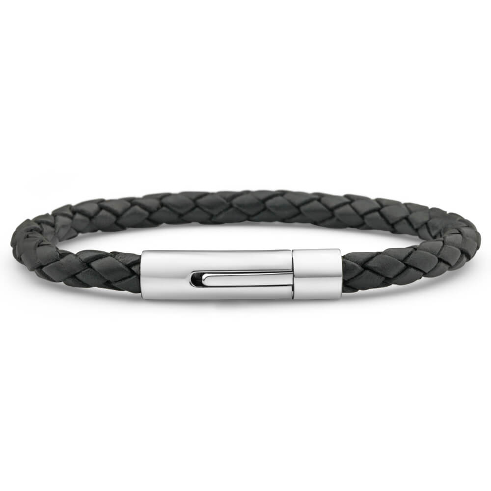Forte Stainless Steel Black Leather 21cm Bracelet With Twist Lock Clasp