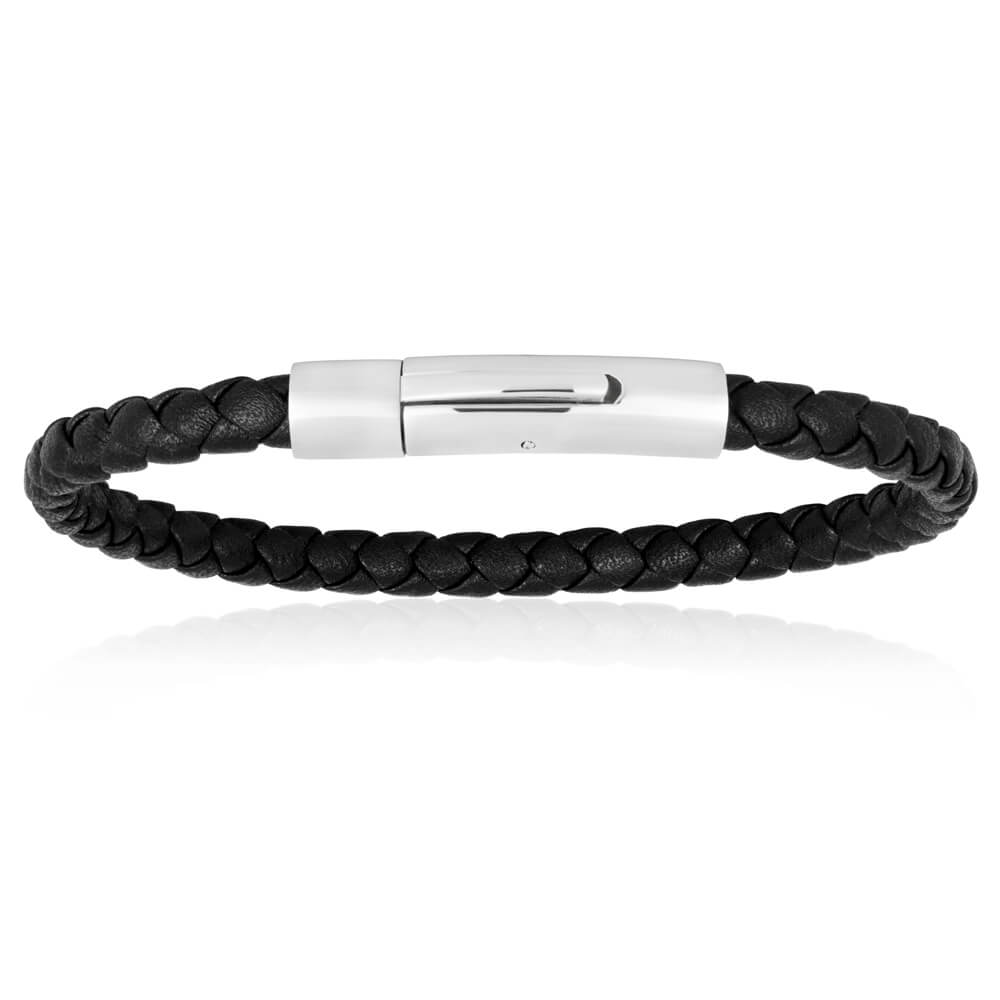 Forte Stainless Steel Black Leather Fancy Bracelet