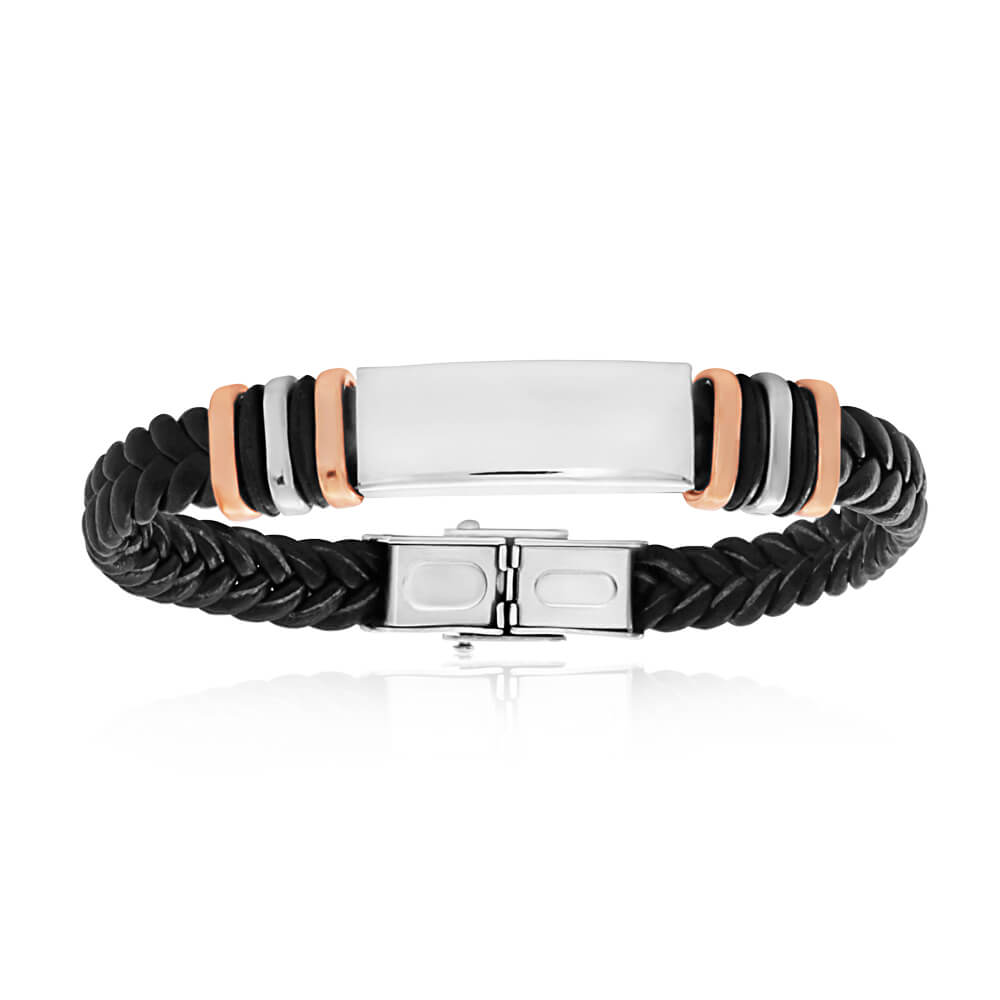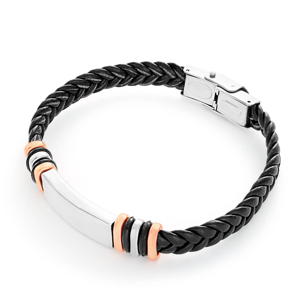 Forte Stainless Steel Leather 19.5cm Fancy Bracelet