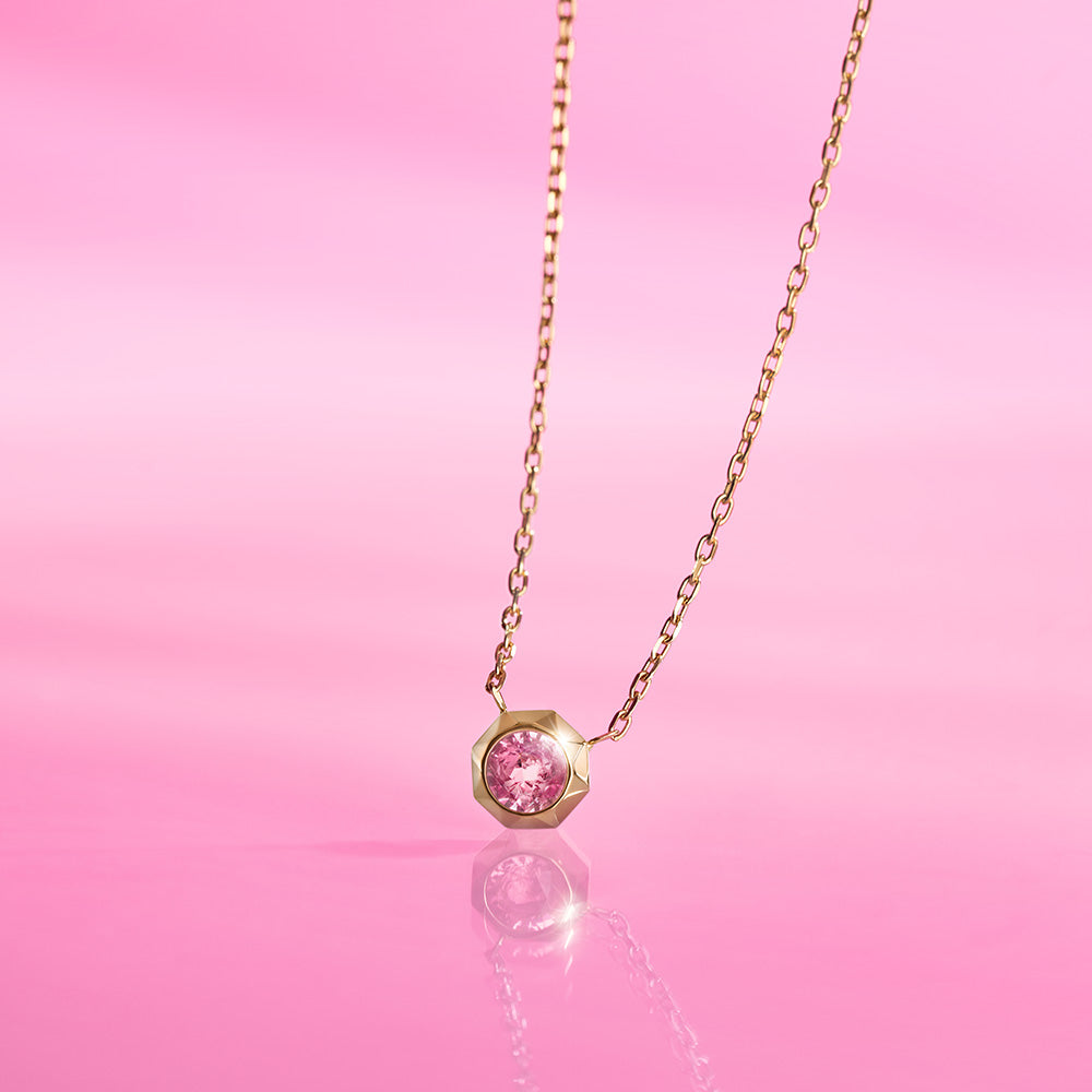 Fossil Barbie Special Edition Gold Plated Stainless Steel Pink Crystal Pendant On Chain