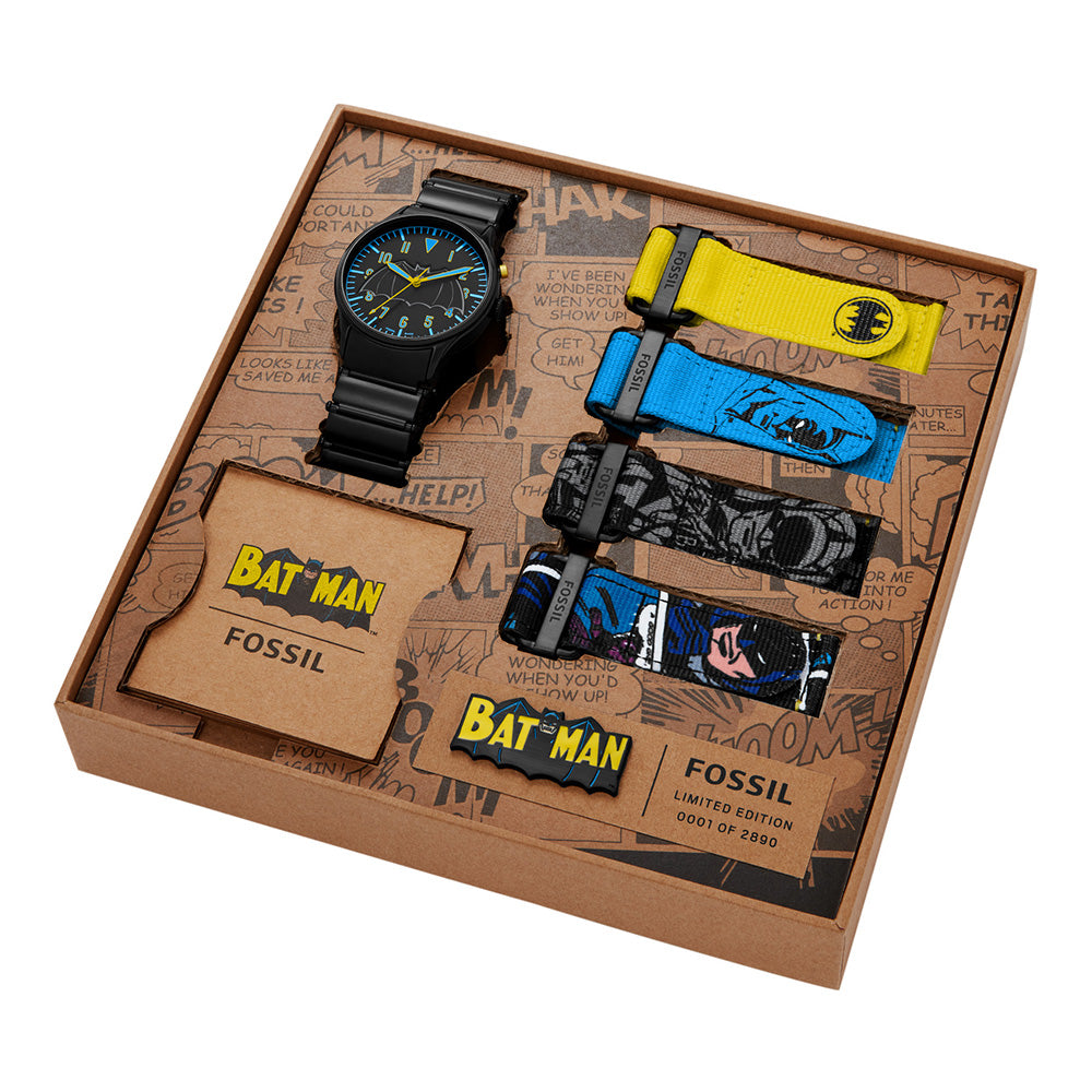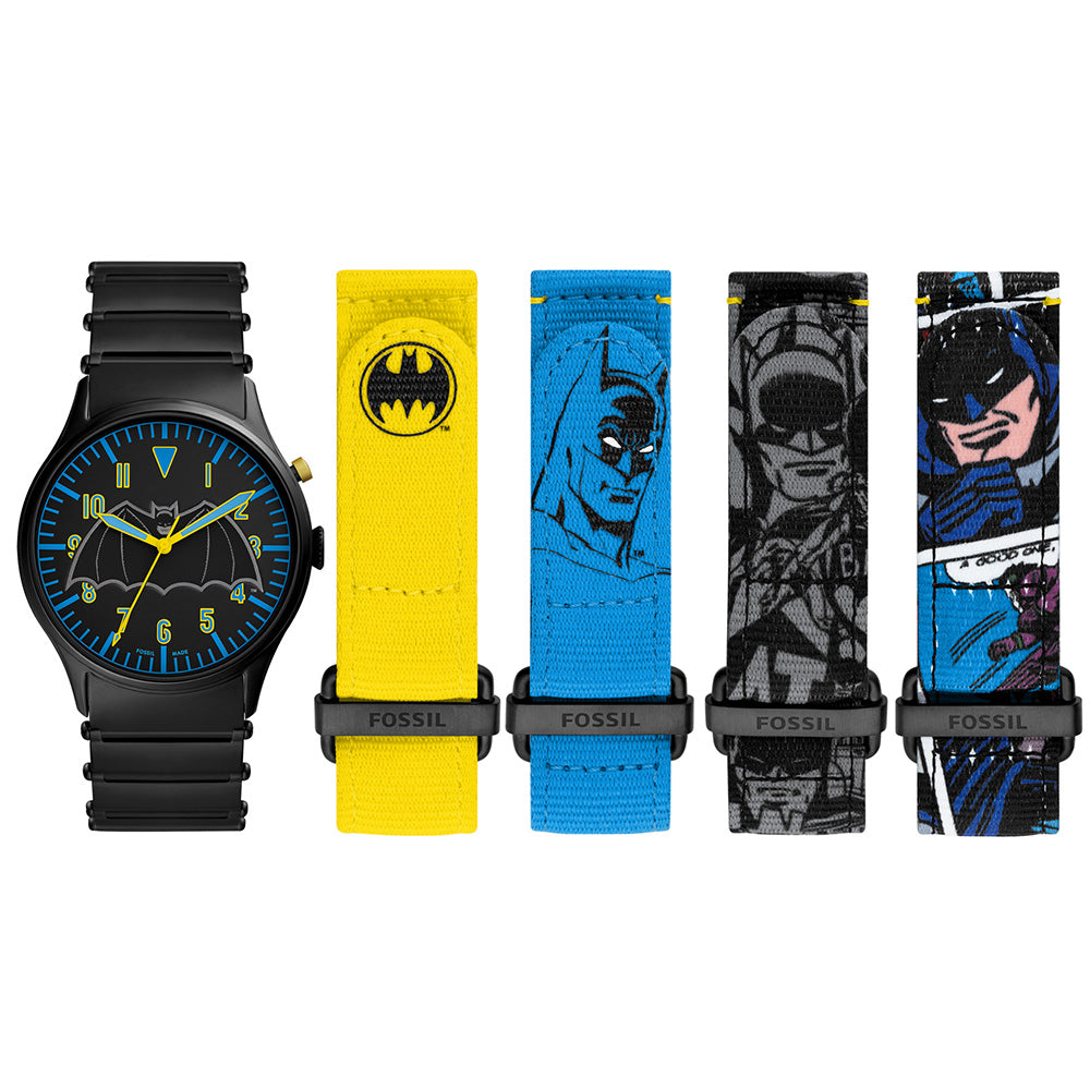 • The exclusive Batman™ Legacy Watch Set includes four interchangeable straps with classic Batman graphics.