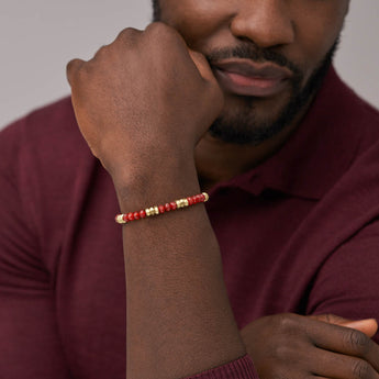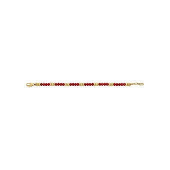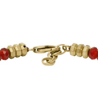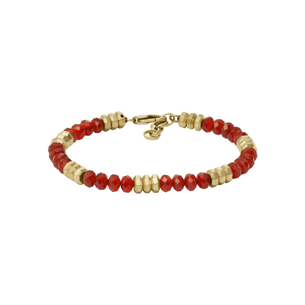 Fossil Gold Plated Stainless Steel Jewelry Red Agate Beaded Bracelet