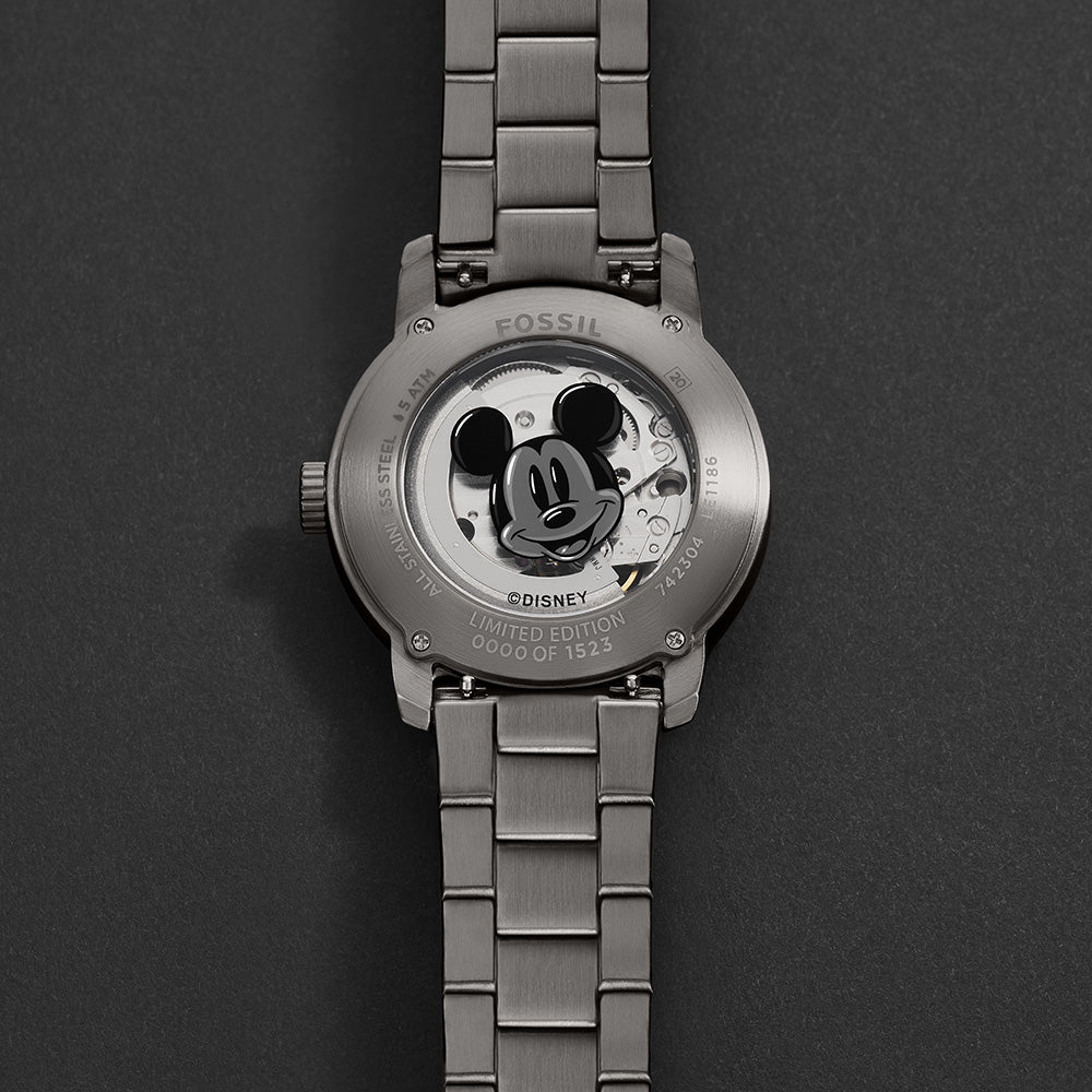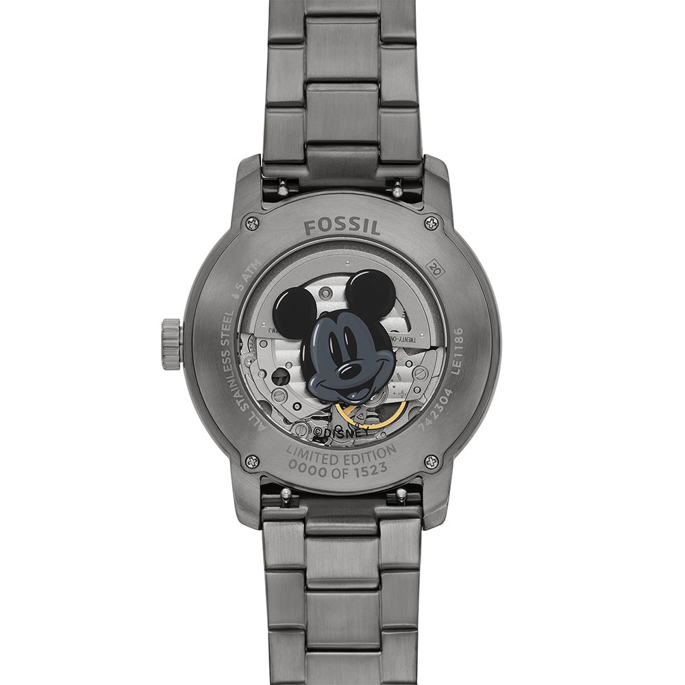 Fossil LE1186 Gunmetal Mickey Heritage Automatic 100th Disney Anniversary