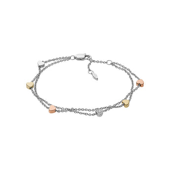 Fossil Multi Tone Gold Plated Stainless Steel Heart Double Chain Bracelet