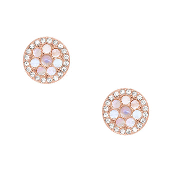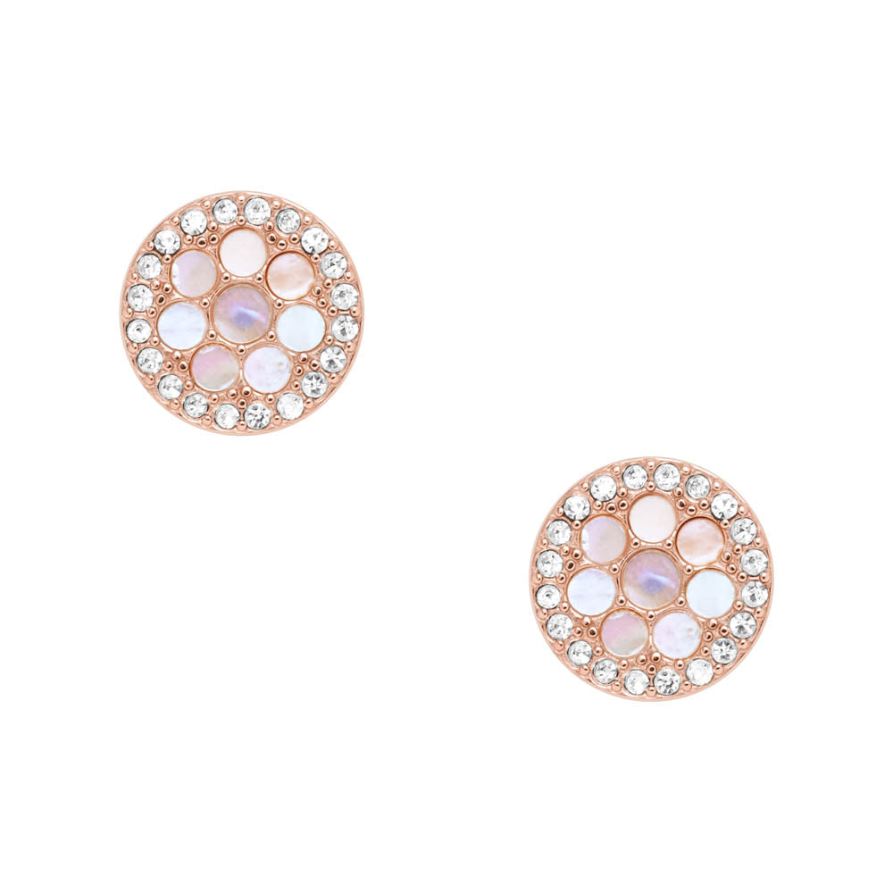 Fossil Rose Gold Plated Stainless Steel Mosaic Mother Of Pearl Round Stud Earring