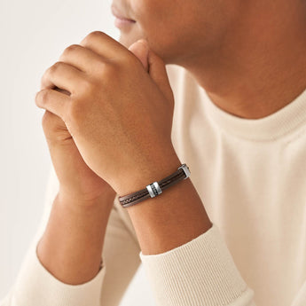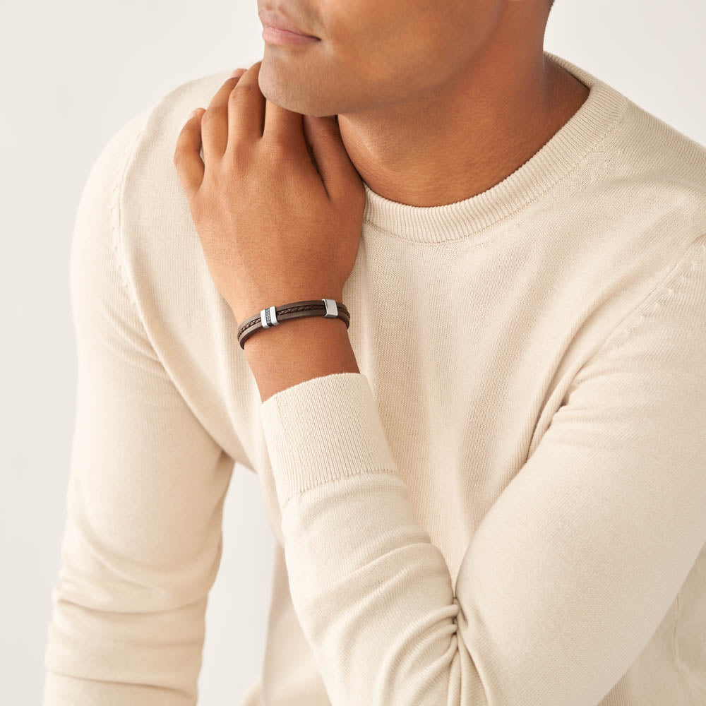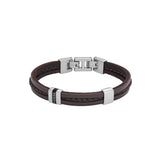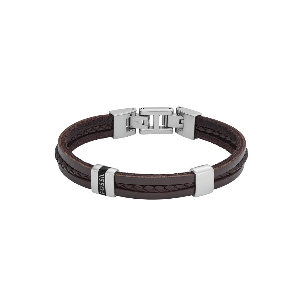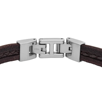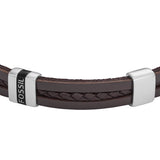 Fossil Stainless Steel Jewelry Brown Leather Strap Bracelet