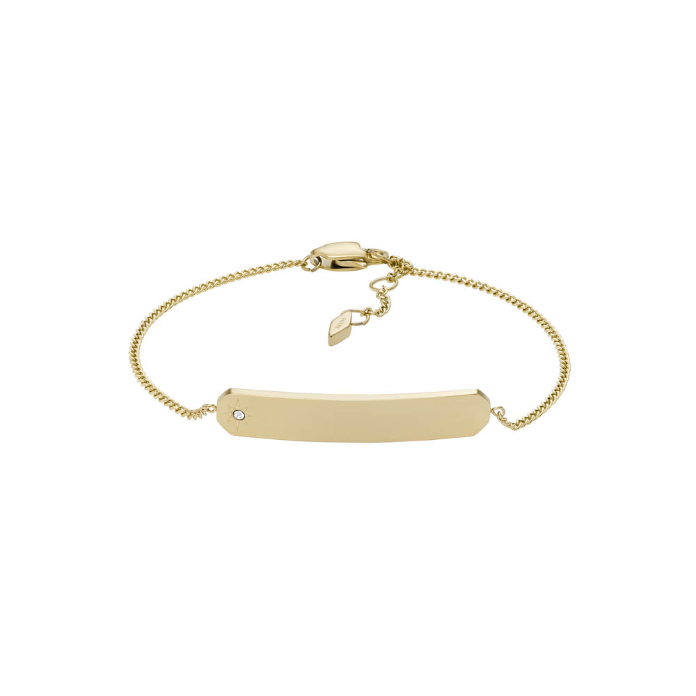 Fossil Yellow Gold Plated Stainless Steel Drew ID Bracelet