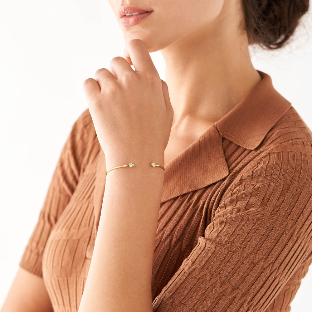 Fossil Yellow Gold Plated Stainless Steel Sadie Trio Glitz Cuff Bangle