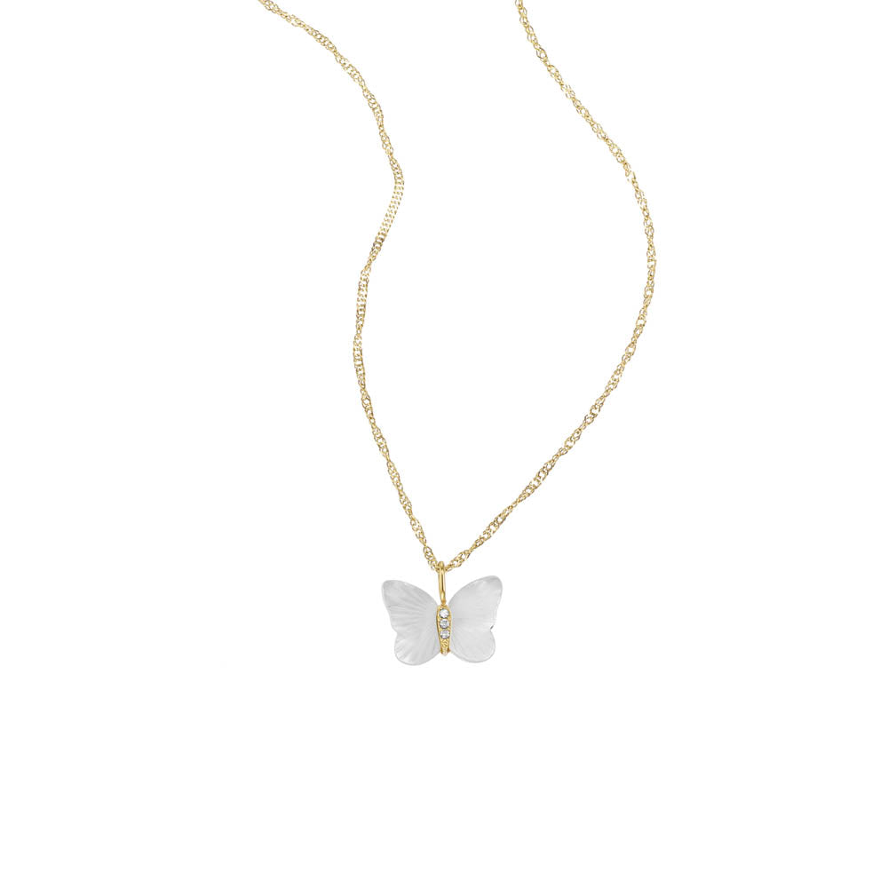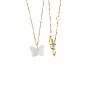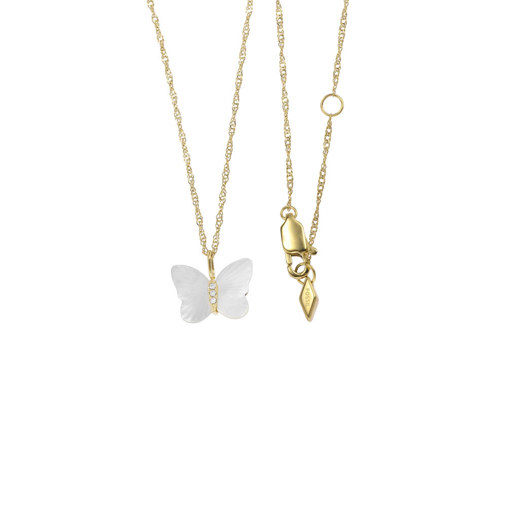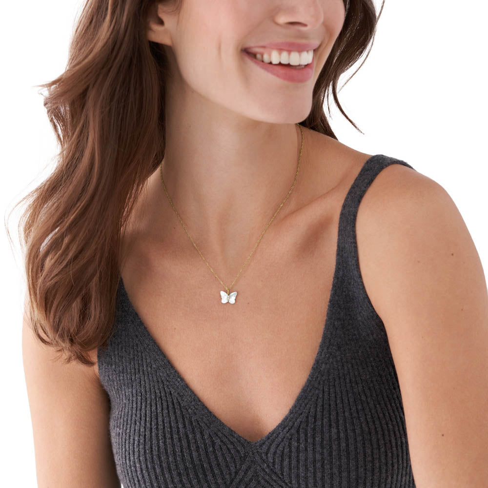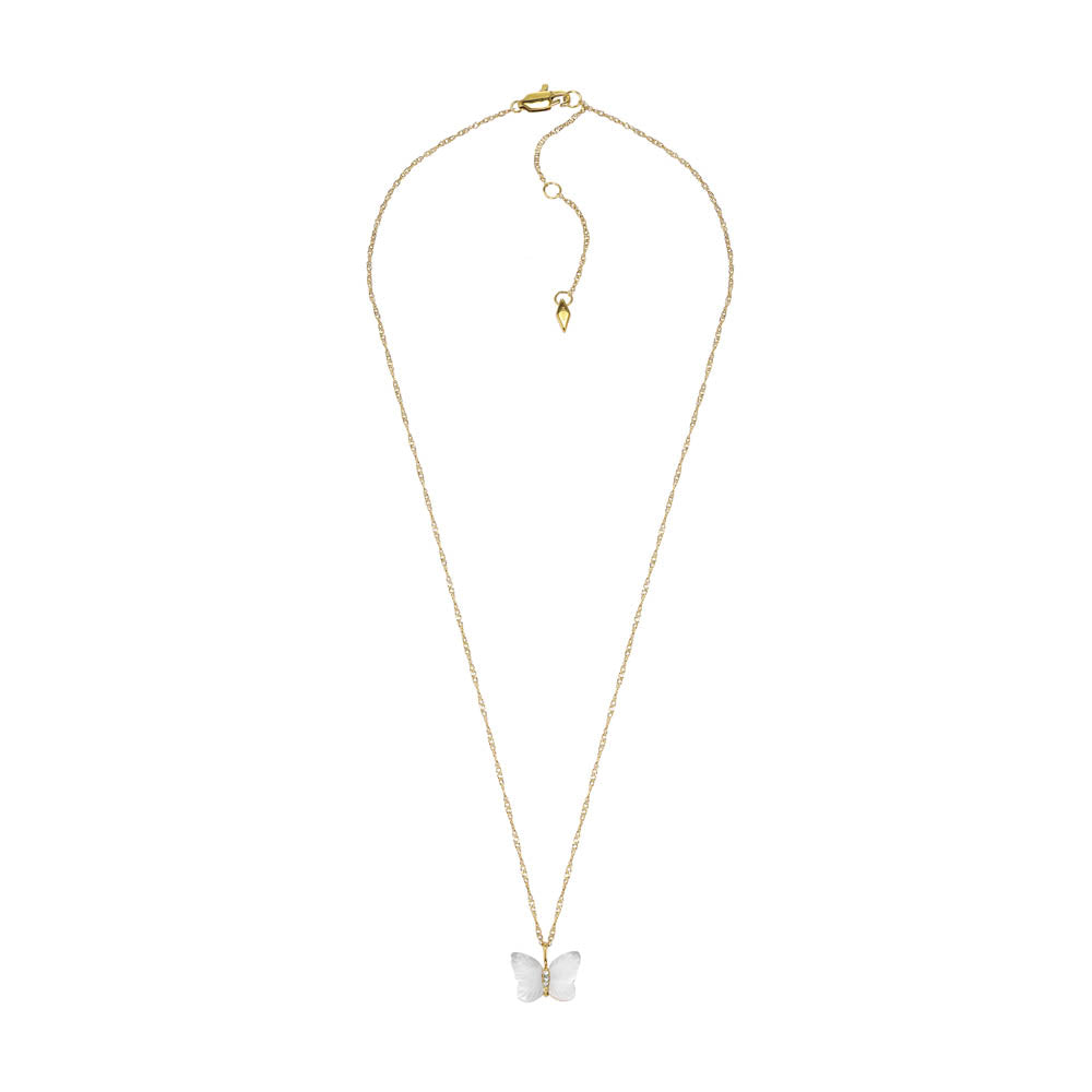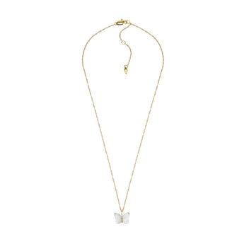 Fossil Yellow Gold Plated Stainless Steel White Mother Of Pearl Butterfly Pendant with Chain