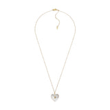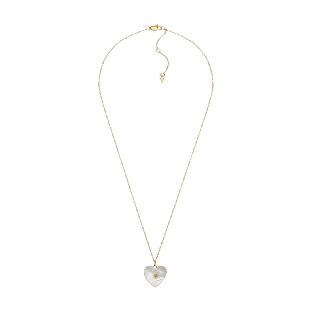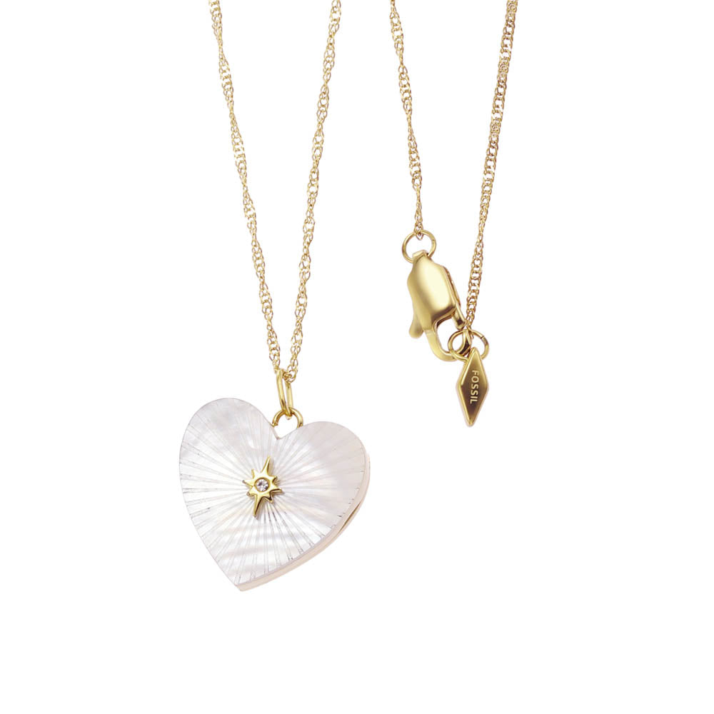 Fossil Yellow Gold Plated Stainless Steel White Mother Of Pearl Heart Locket Pendant On Chain