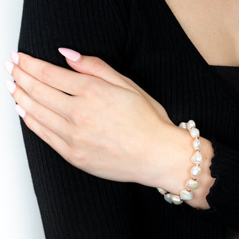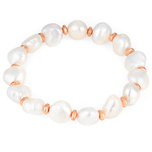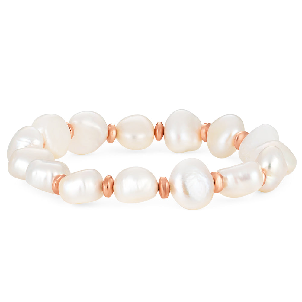 Freshwater Pearl and Rose Tone Hematite Stretch Bracelet
