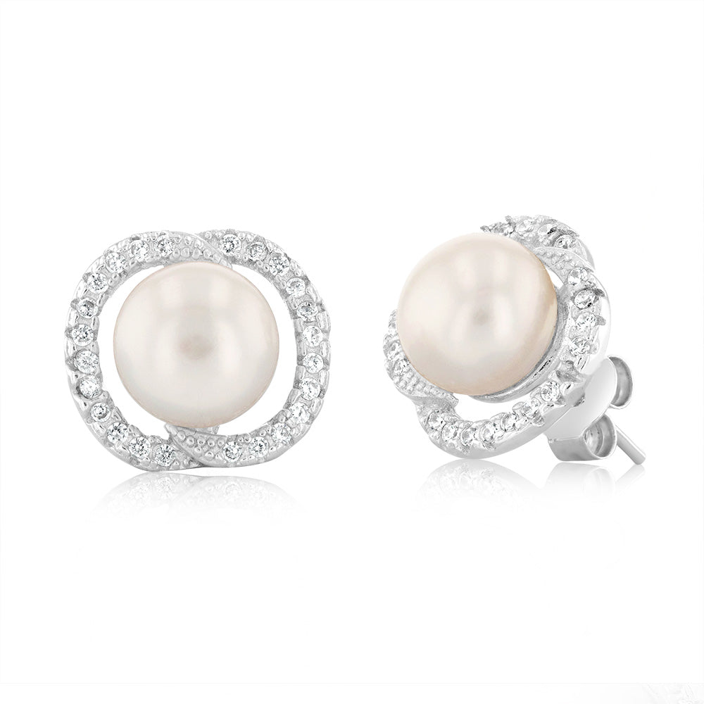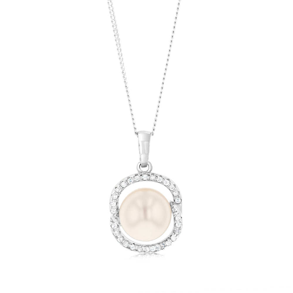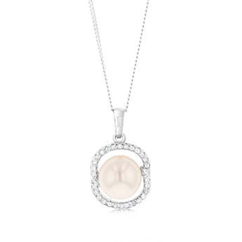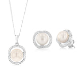 Freshwater Pearl and Zirconia Earrings and Pendant Gift Boxed Set.