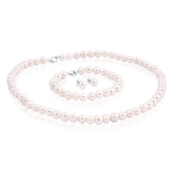 Freshwater White Pearl Boxed Set with Sterling Silver Clasp