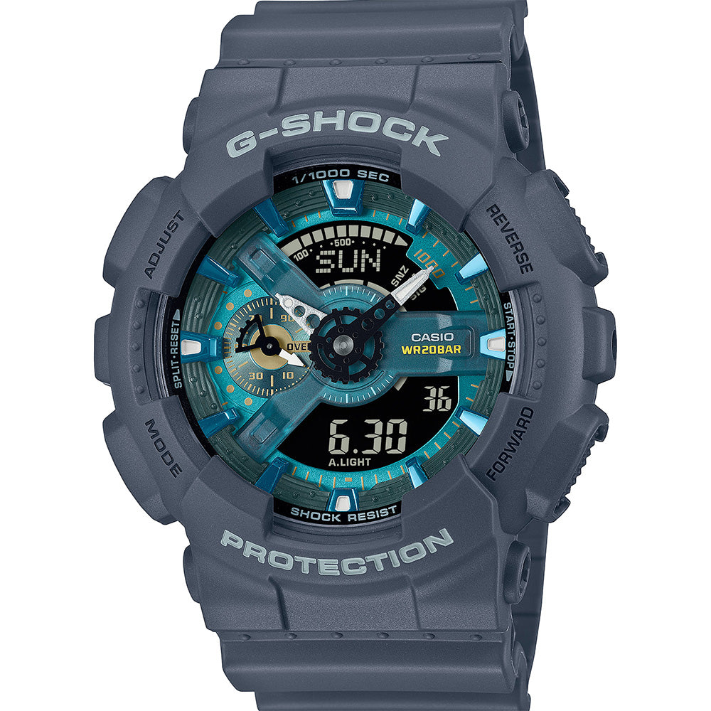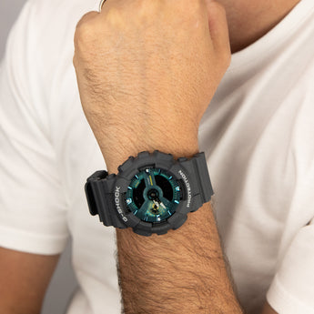 A standout in this series, the GA-110AS-2A captures the cool tranquillity of an oasis at night. Its navy-blue bezel and band evoke the deep hues of the evening sky, while blue-green dial accents mimic the peaceful glow of moonlit waters, creating a striking and serene look.
