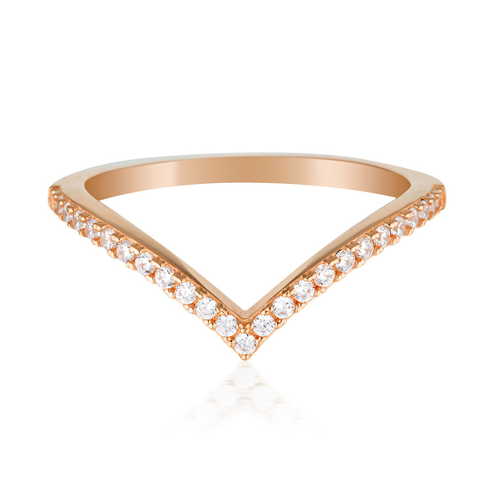Georgini Sterling Silver Rose Gold Plated Rock Star V Ring