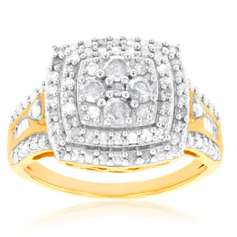Gold Plated Silver 1 Carat Diamond Dress Ring