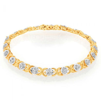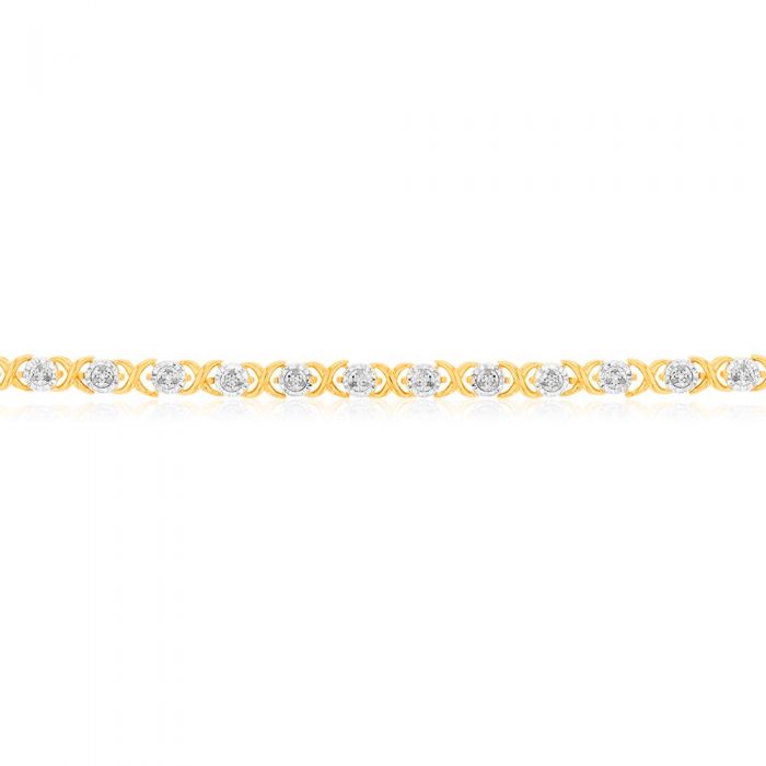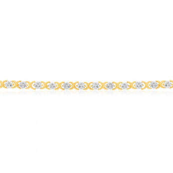 Gold Plated Sterling Silver 1/4 Carat Fancy Diamond 18cm Hugs and Kisses Bracelet