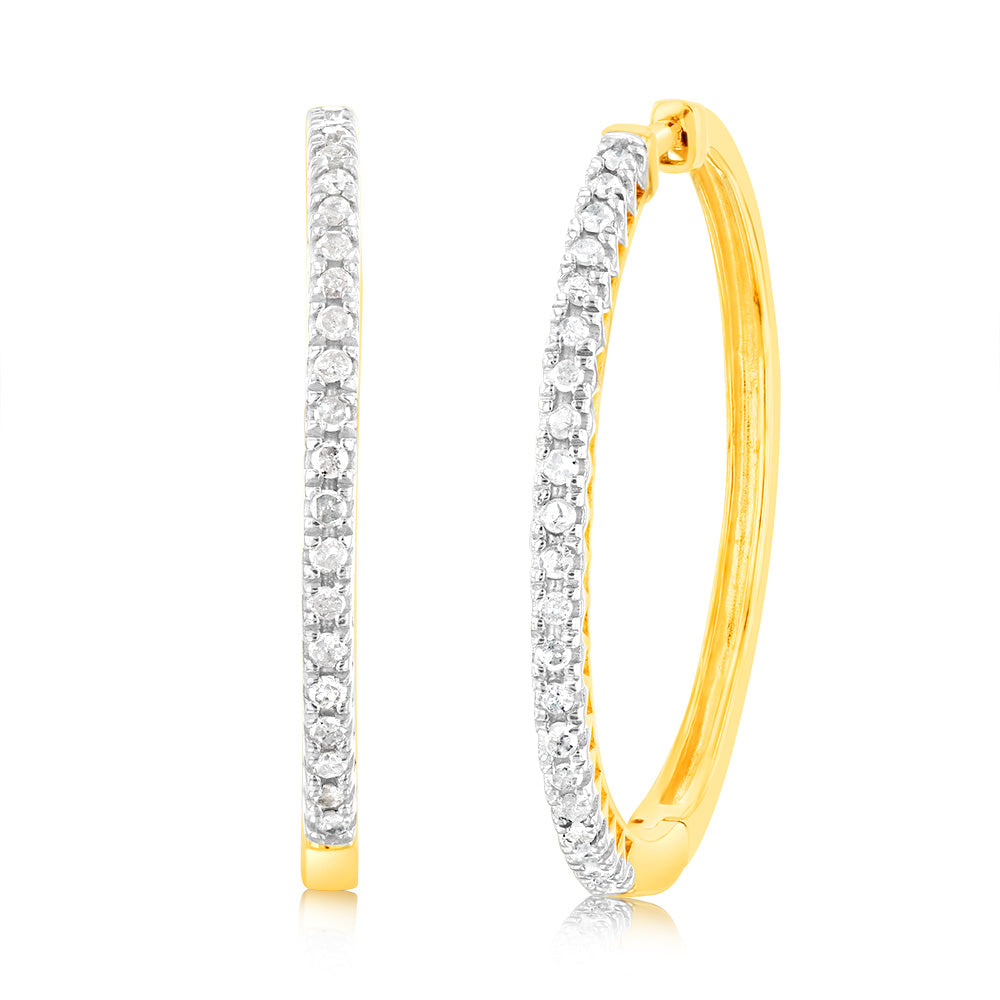 Gold Plated Sterling Silver 1/5 Carat Diamond Hoop Earrings