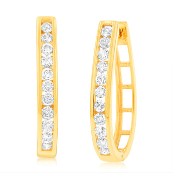 Gold Plated Sterling Silver 1 Carat Diamond Hoop Earrings