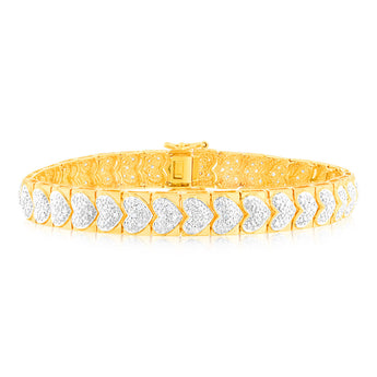 Gold plated Sterling Silver 1 Carat Heart Natural Diamond 18.5cm Bracelet