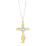 Gold Plated Sterling Silver Cross Diamond Pendant with 5 Round Diamonds on 46cm Chain