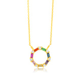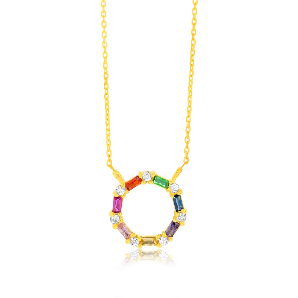 Gold Plated Sterling Silver Multicolor Cubic Zirconia Circle Pendant With 45cm Chain