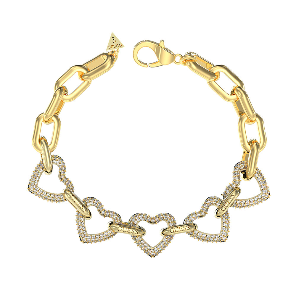Guess Gold Plated Stainless Steel 15mm Multi Pave Hearts Bracelets
