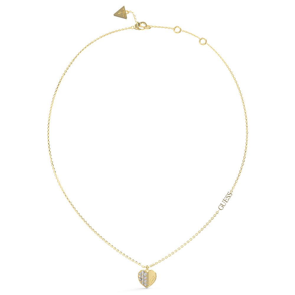 Guess Gold Plated Stainless Steel 16-18" Plain & Pave Heart Chain