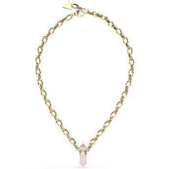 Guess Gold Plated Stainless Steel 18" Rose Quartz Oval Chain