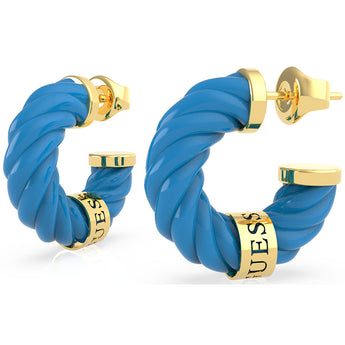 GUESS Gold Plated Stainless Steel 20mm Blue Torchon Earrings