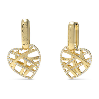 Guess Gold Plated Stainless Steel 30mm Heart Cage Huggie Earrings