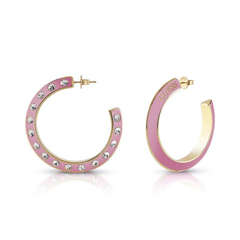 Guess Gold Plated Stainless Steel 30mm Medium Pink Hoop Earrings