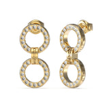 Guess Gold Plated Stainless Steel 30mm Pave Double Circle Drop Earrings