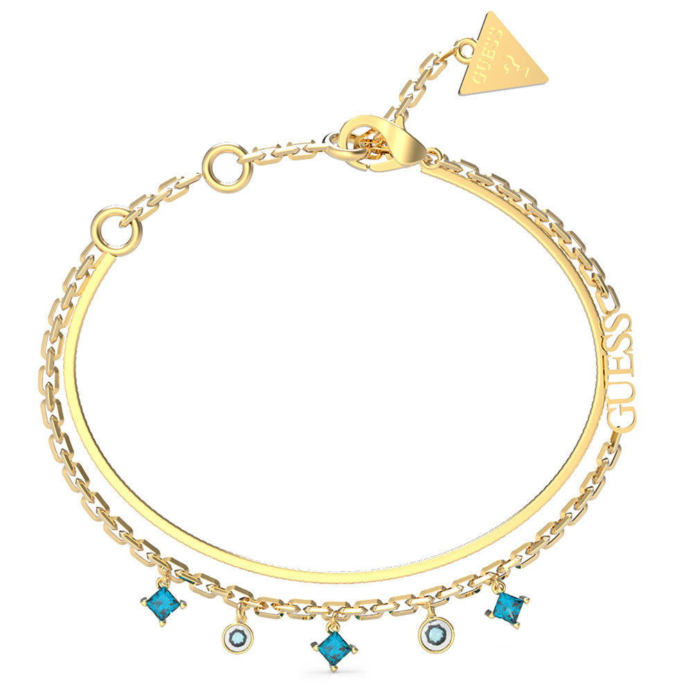 Guess Gold Plated Stainless Steel Aqua Charm Double Chain Bracelet