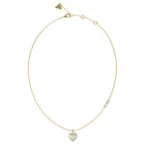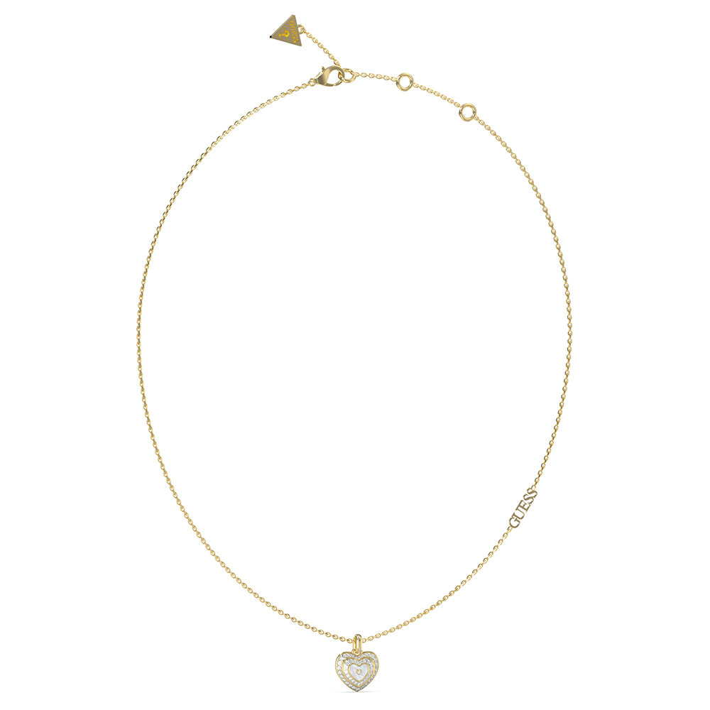 Guess Gold Plated Stainless Steel Mother Of Pearl Mini Heart Pendant On 16-18" Chain