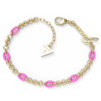 Guess Gold Plated Stainless Steel Neon Pink Multi Charms Bracelet