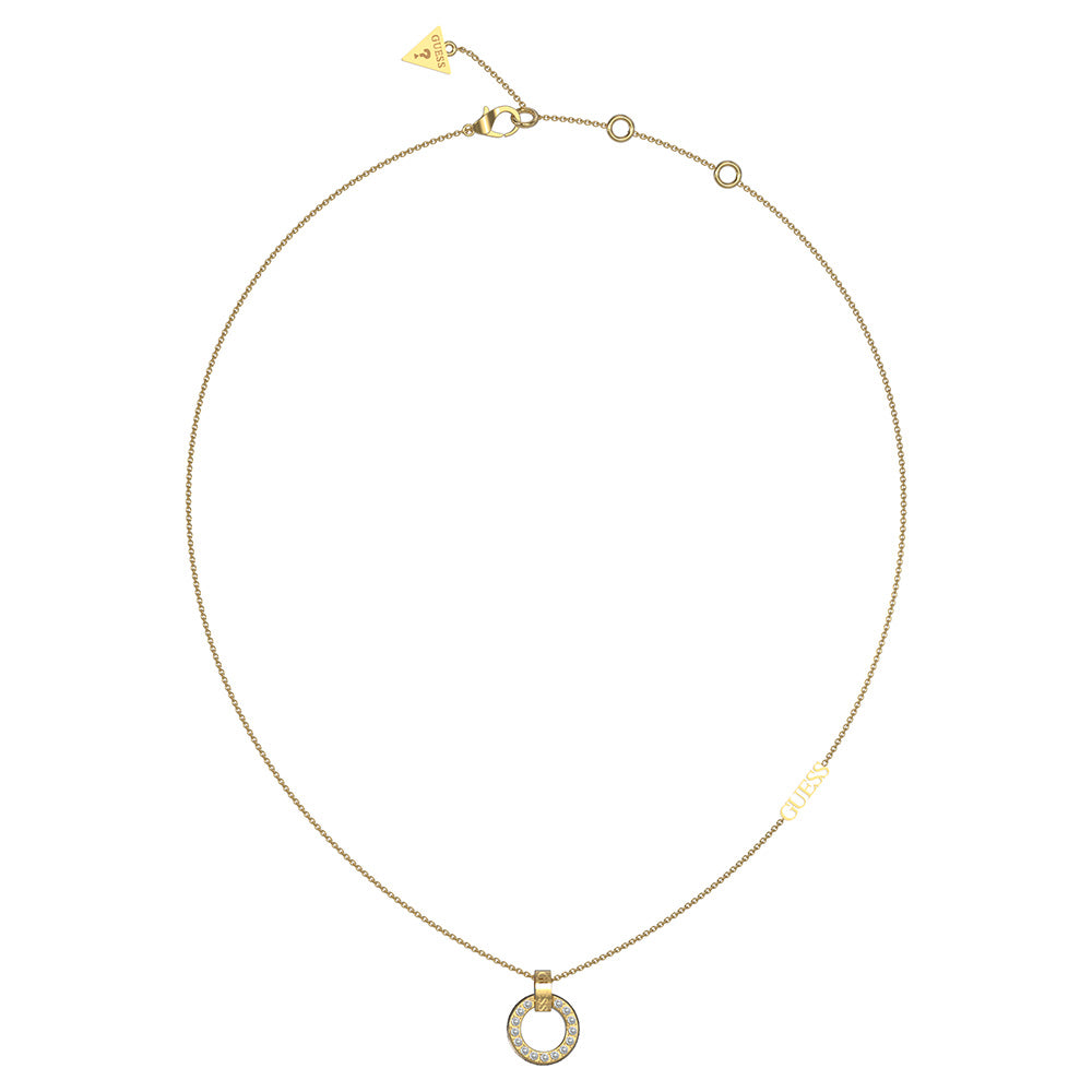 Guess Gold Plated Stainless Steel Pave Circle Pendant On 16-18" Chain
